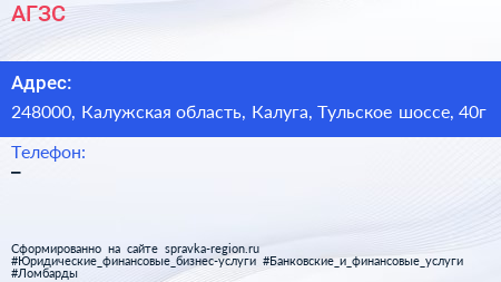 АГЗС по адресу 248000, Калужская область, Калуга, Тульское шоссе, 40г в дальнейшем Организация, размещена в следующих категориях:
