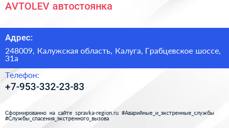 AVTOLEV, автостоянка по адресу 248009, Калужская область, Калуга, Грабцевское шоссе, 31а в дальнейшем Организация, размещена в следующих категориях: