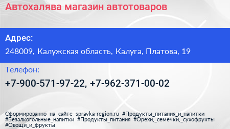 Автохалява, магазин автотоваров по адресу 248009, Калужская область, Калуга, Платова, 19 в дальнейшем Организация, размещена в следующих категориях: