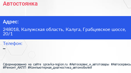 Автостоянка по адресу 248018, Калужская область, Калуга, Грабцевское шоссе, 20/1 в дальнейшем Организация, размещена в следующих категориях: