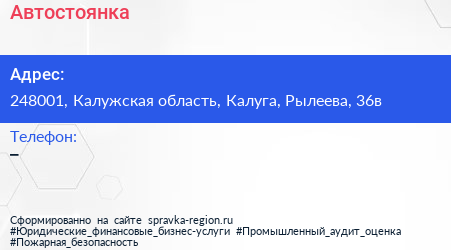 Автостоянка по адресу 248001, Калужская область, Калуга, Рылеева, 36в в дальнейшем Организация, размещена в следующих категориях: