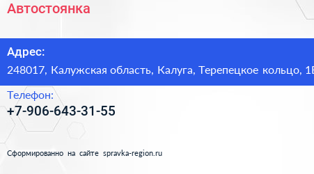 Автостоянка по адресу 248017, Калужская область, Калуга, Терепецкое кольцо, 1Б в дальнейшем Организация, размещена в следующих категориях: