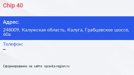 Chip 40 по адресу 248009, Калужская область, Калуга, Грабцевское шоссе, 60а в дальнейшем Организация, размещена в следующих категориях: