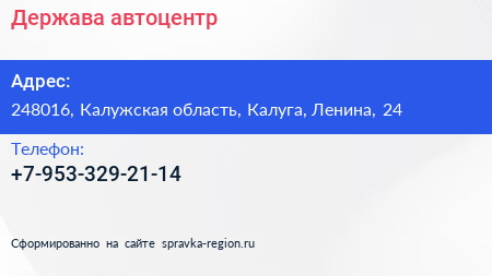 Держава, автоцентр по адресу 248016, Калужская область, Калуга, Ленина, 24 в дальнейшем Организация, размещена в следующих категориях: