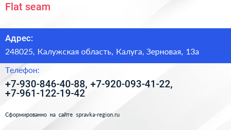 Flat seam по адресу 248025, Калужская область, Калуга, Зерновая, 13а в дальнейшем Организация, размещена в следующих категориях: