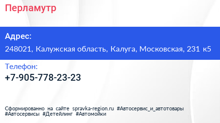 Перламутр по адресу 248021, Калужская область, Калуга, Московская, 231 к5 в дальнейшем Организация, размещена в следующих категориях: