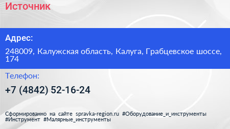 Источник по адресу 248009, Калужская область, Калуга, Грабцевское шоссе, 174 в дальнейшем Организация, размещена в следующих категориях:
