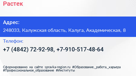 Растек по адресу 248033, Калужская область, Калуга, Академическая, 8 в дальнейшем Организация, размещена в следующих категориях: