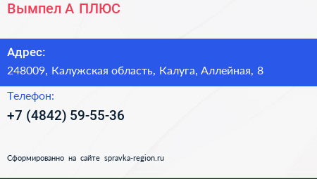 Вымпел А ПЛЮС по адресу 248009, Калужская область, Калуга, Аллейная, 8 в дальнейшем Организация, размещена в следующих категориях: