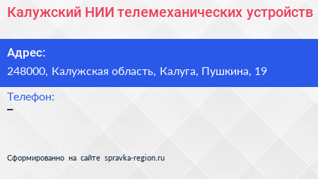 Калужский НИИ телемеханических устройств по адресу 248000, Калужская область, Калуга, Пушкина, 19 в дальнейшем Организация, размещена в следующих категориях: