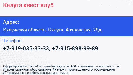 Калуга, квест-клуб по адресу Калужская область, Калуга, Азаровская, 28д в дальнейшем Организация, размещена в следующих категориях: