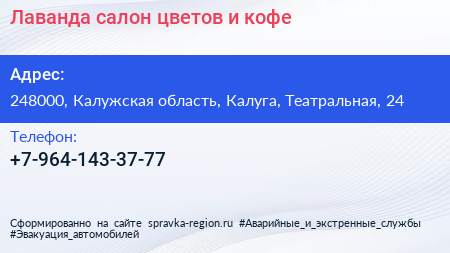 Лаванда, салон цветов и кофе по адресу 248000, Калужская область, Калуга, Театральная, 24 в дальнейшем Организация, размещена в следующих категориях: