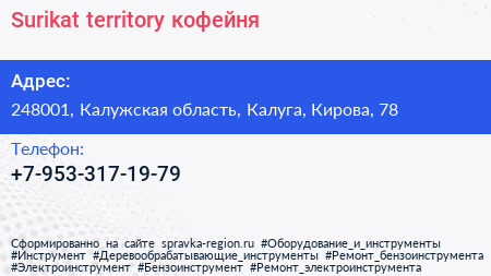 Surikat territory, кофейня по адресу 248001, Калужская область, Калуга, Кирова, 78 в дальнейшем Организация, размещена в следующих категориях: