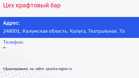 Цех, крафтовый бар по адресу 248001, Калужская область, Калуга, Театральная, 7а в дальнейшем Организация, размещена в следующих категориях: