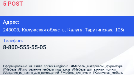 5 POST по адресу 248008, Калужская область, Калуга, Тарутинская, 105г в дальнейшем Организация, размещена в следующих категориях: