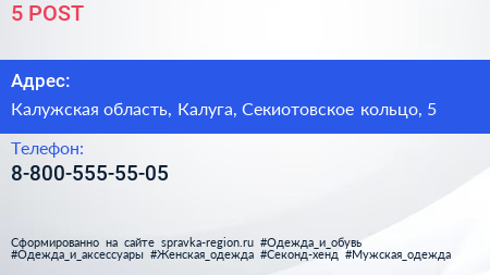 5 POST по адресу Калужская область, Калуга, Секиотовское кольцо, 5 в дальнейшем Организация, размещена в следующих категориях: