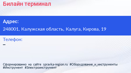 Билайн, терминал по адресу 248001, Калужская область, Калуга, Кирова, 19 в дальнейшем Организация, размещена в следующих категориях: