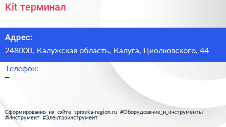 Kit, терминал по адресу 248000, Калужская область, Калуга, Циолковского, 44 в дальнейшем Организация, размещена в следующих категориях:
