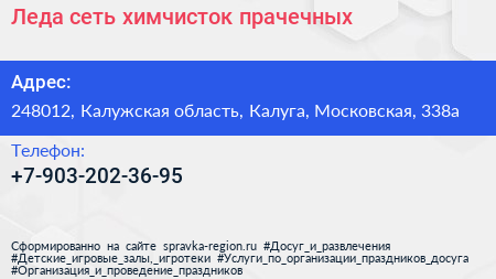 Леда, сеть химчисток-прачечных по адресу 248012, Калужская область, Калуга, Московская, 338а в дальнейшем Организация, размещена в следующих категориях: