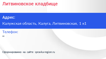 Литвиновское кладбище по адресу Калужская область, Калуга, Литвиновская, 1 к1 в дальнейшем Организация, размещена в следующих категориях: