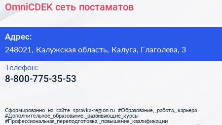 OmniCDEK, сеть постаматов по адресу 248021, Калужская область, Калуга, Глаголева, 3 в дальнейшем Организация, размещена в следующих категориях: