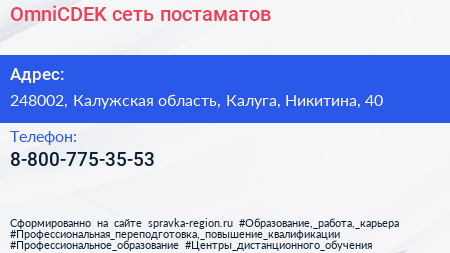 OmniCDEK, сеть постаматов по адресу 248002, Калужская область, Калуга, Никитина, 40 в дальнейшем Организация, размещена в следующих категориях: