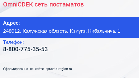 OmniCDEK, сеть постаматов по адресу 248012, Калужская область, Калуга, Кибальчича, 1 в дальнейшем Организация, размещена в следующих категориях: