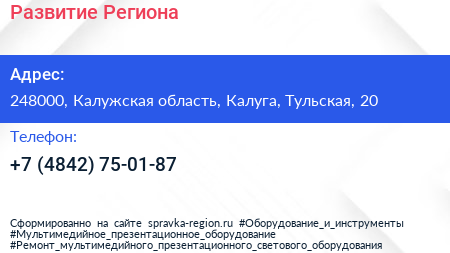 Развитие Региона по адресу 248000, Калужская область, Калуга, Тульская, 20 в дальнейшем Организация, размещена в следующих категориях: