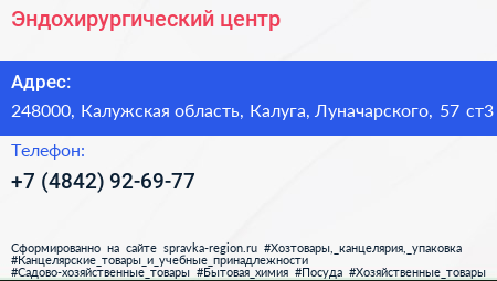 Эндохирургический центр по адресу 248000, Калужская область, Калуга, Луначарского, 57 ст3 в дальнейшем Организация, размещена в следующих категориях: