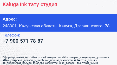 Kaluga Ink, тату-студия по адресу 248001, Калужская область, Калуга, Дзержинского, 78 в дальнейшем Организация, размещена в следующих категориях: