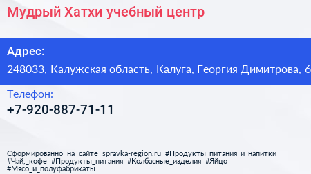 Мудрый Хатхи, учебный центр по адресу 248033, Калужская область, Калуга, Георгия Димитрова, 6 в дальнейшем Организация, размещена в следующих категориях: