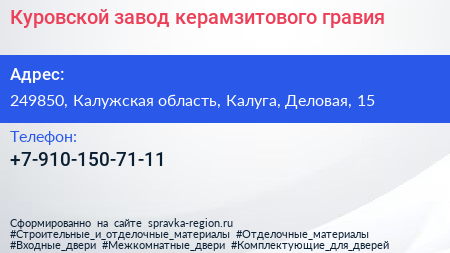 Куровской завод керамзитового гравия по адресу 249850, Калужская область, Калуга, Деловая, 15 в дальнейшем Организация, размещена в следующих категориях: