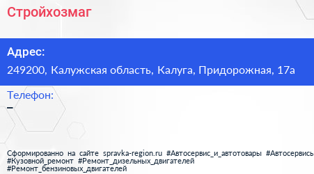 Стройхозмаг по адресу 249200, Калужская область, Калуга, Придорожная, 17а в дальнейшем Организация, размещена в следующих категориях: