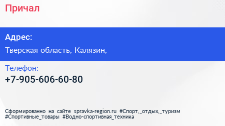 Причал по адресу Тверская область, Калязин, в дальнейшем Организация, размещена в следующих категориях: