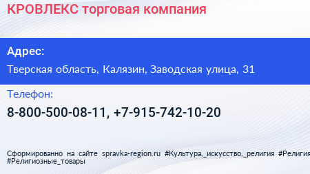 КРОВЛЕКС, торговая компания по адресу Тверская область, Калязин, Заводская улица, 31 в дальнейшем Организация, размещена в следующих категориях: