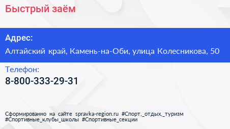 Быстрый заём по адресу Алтайский край, Камень-на-Оби, улица Колесникова, 50 в дальнейшем Организация, размещена в следующих категориях: