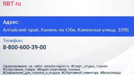 RBT.ru по адресу Алтайский край, Камень-на-Оби, Каменская улица, 109Б в дальнейшем Организация, размещена в следующих категориях: