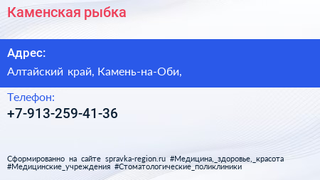 Каменская рыбка по адресу Алтайский край, Камень-на-Оби, в дальнейшем Организация, размещена в следующих категориях: