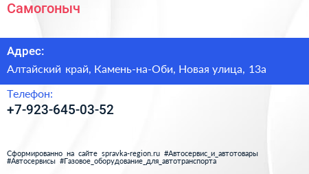 Самогоныч по адресу Алтайский край, Камень-на-Оби, Новая улица, 13а в дальнейшем Организация, размещена в следующих категориях:
