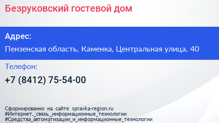 Безруковский, гостевой дом по адресу Пензенская область, Каменка, Центральная улица, 40 в дальнейшем Организация, размещена в следующих категориях: