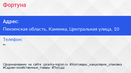 Фортуна по адресу Пензенская область, Каменка, Центральная улица, 10 в дальнейшем Организация, размещена в следующих категориях: