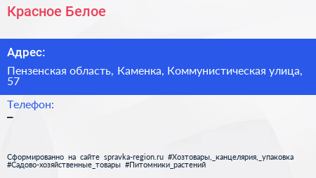 Красное & Белое по адресу Пензенская область, Каменка, Коммунистическая улица, 57 в дальнейшем Организация, размещена в следующих категориях:
