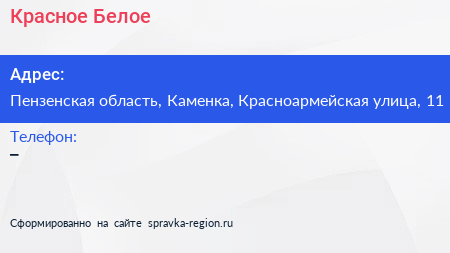 Красное & Белое по адресу Пензенская область, Каменка, Красноармейская улица, 11 в дальнейшем Организация, размещена в следующих категориях: