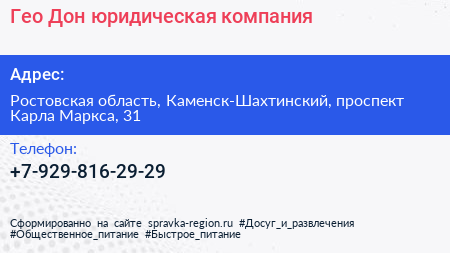 Гео-Дон, юридическая компания по адресу Ростовская область, Каменск-Шахтинский, проспект Карла Маркса, 31 в дальнейшем Организация, размещена в следующих категориях: