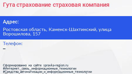 Гута-страхование, страховая компания по адресу Ростовская область, Каменск-Шахтинский, улица Ворошилова, 157 в дальнейшем Организация, размещена в следующих категориях: