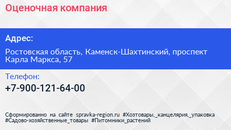 Оценочная компания по адресу Ростовская область, Каменск-Шахтинский, проспект Карла Маркса, 57 в дальнейшем Организация, размещена в следующих категориях: