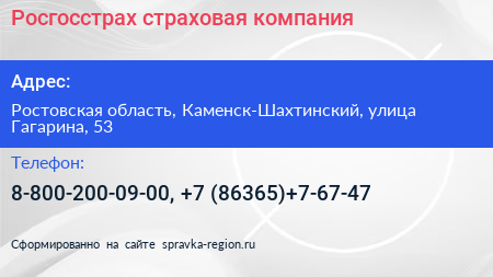 Росгосстрах, страховая компания по адресу Ростовская область, Каменск-Шахтинский, улица Гагарина, 53 в дальнейшем Организация, размещена в следующих категориях: