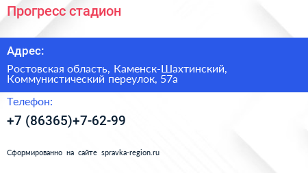 Прогресс, стадион по адресу Ростовская область, Каменск-Шахтинский, Коммунистический переулок, 57а в дальнейшем Организация, размещена в следующих категориях:
