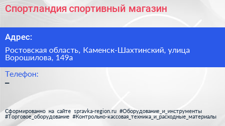 Спортландия, спортивный магазин по адресу Ростовская область, Каменск-Шахтинский, улица Ворошилова, 149а в дальнейшем Организация, размещена в следующих категориях: