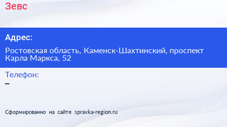 Зевс по адресу Ростовская область, Каменск-Шахтинский, проспект Карла Маркса, 52 в дальнейшем Организация, размещена в следующих категориях:
